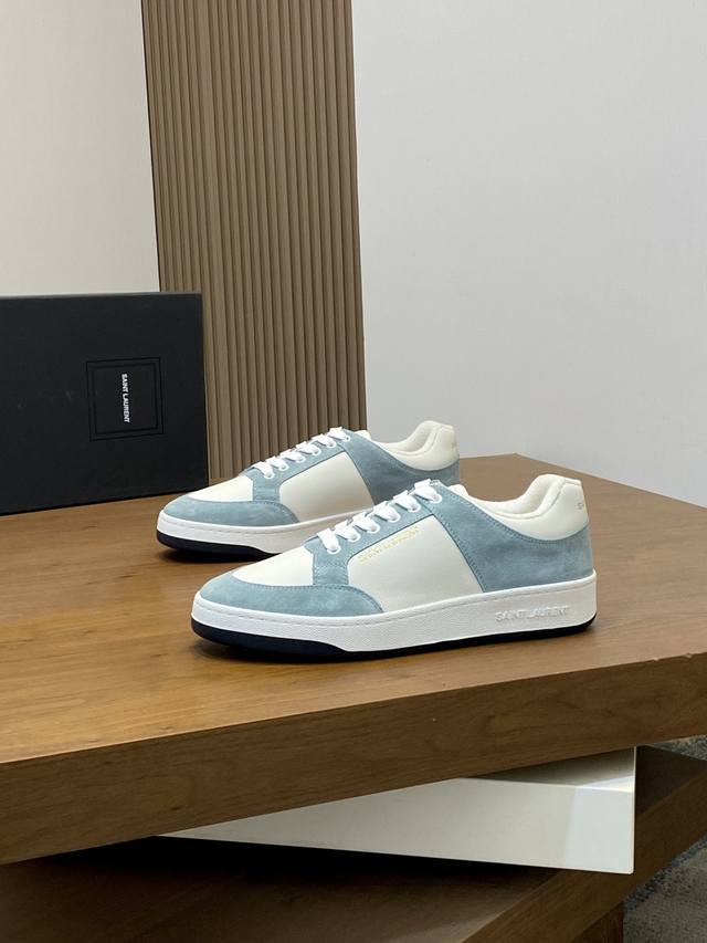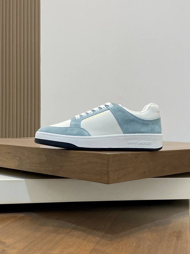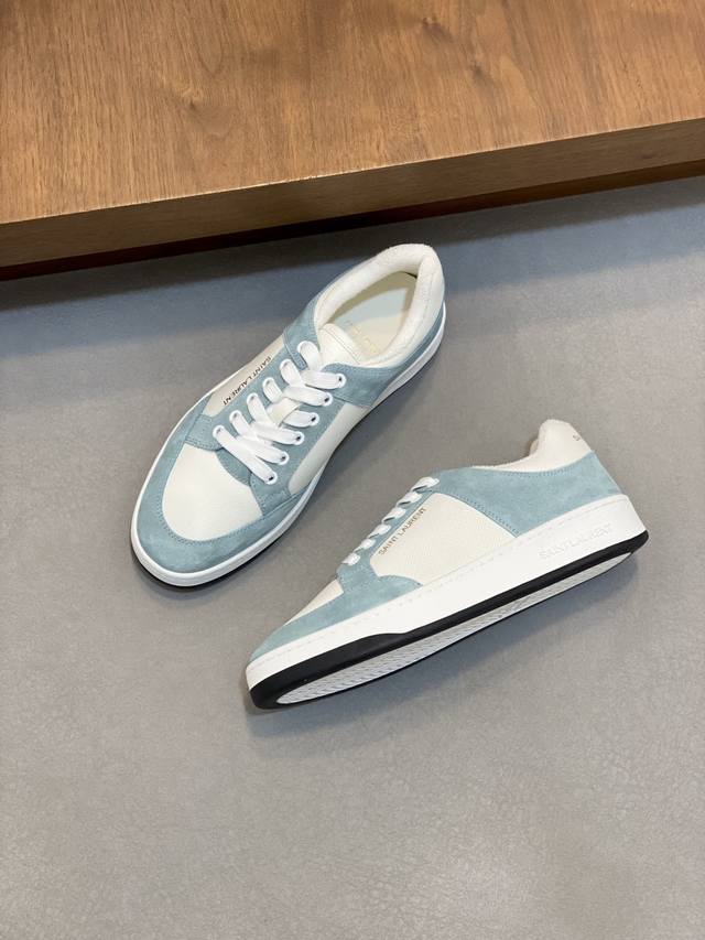 情侣款Saint Laurent圣罗兰低帮系带运动鞋 S L61官网新款 品牌旗舰店同步、意大利原胚粒面牛皮+正面饰片点缀多孔皮革、拉环饰以金色Saint La