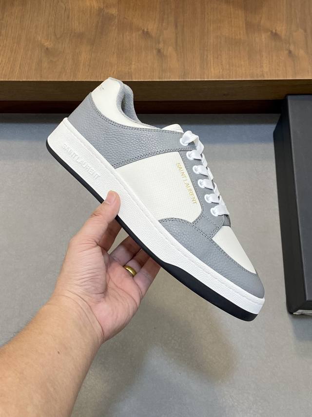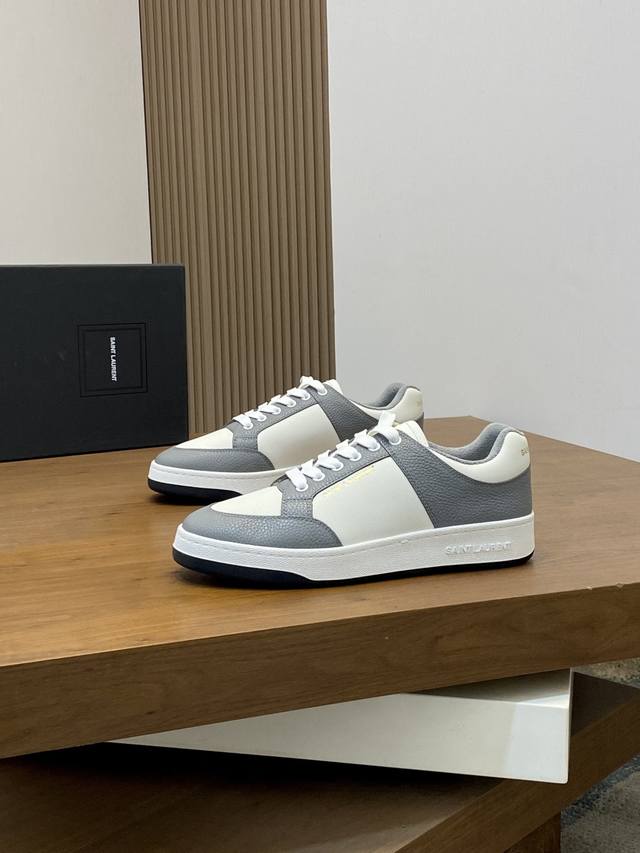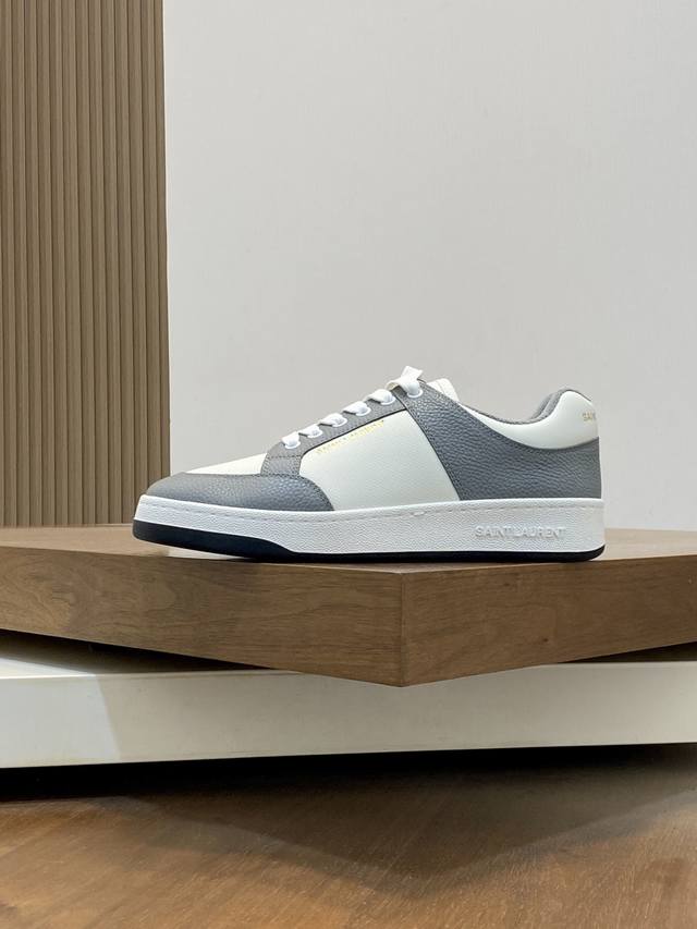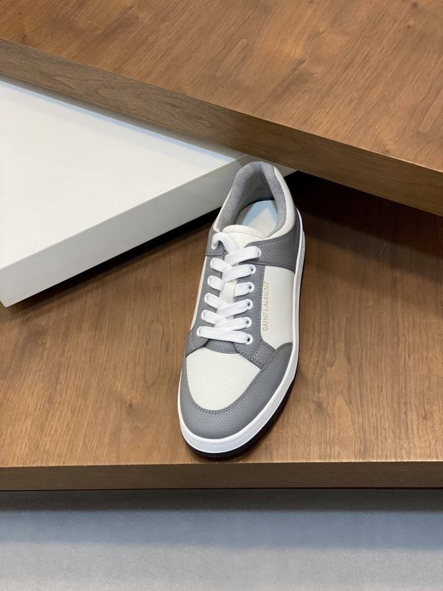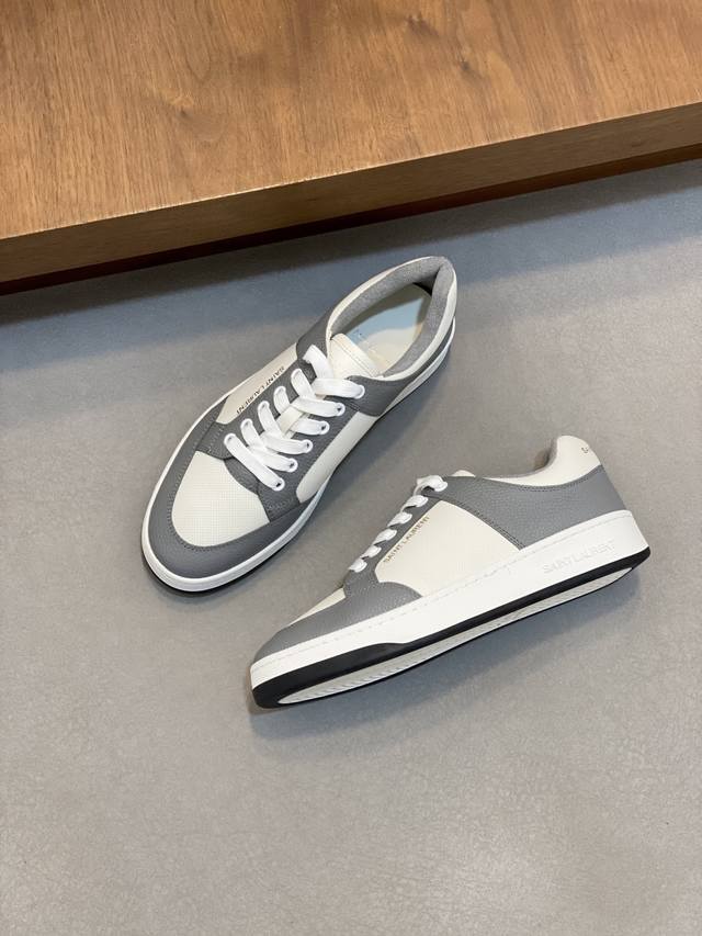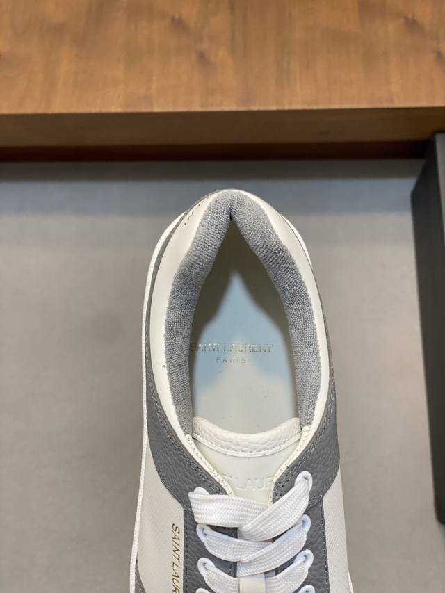 情侣款Saint Laurent圣罗兰低帮系带运动鞋 S L61官网新款 品牌旗舰店同步、意大利原胚粒面牛皮+正面饰片点缀多孔皮革、拉环饰以金色Saint La