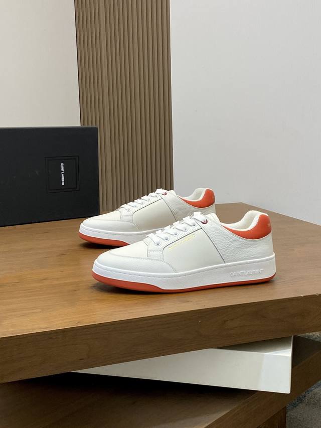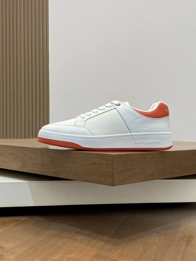 情侣款Saint Laurent圣罗兰低帮系带运动鞋 S L61官网新款 品牌旗舰店同步、意大利原胚粒面牛皮+正面饰片点缀多孔皮革、拉环饰以金色Saint La