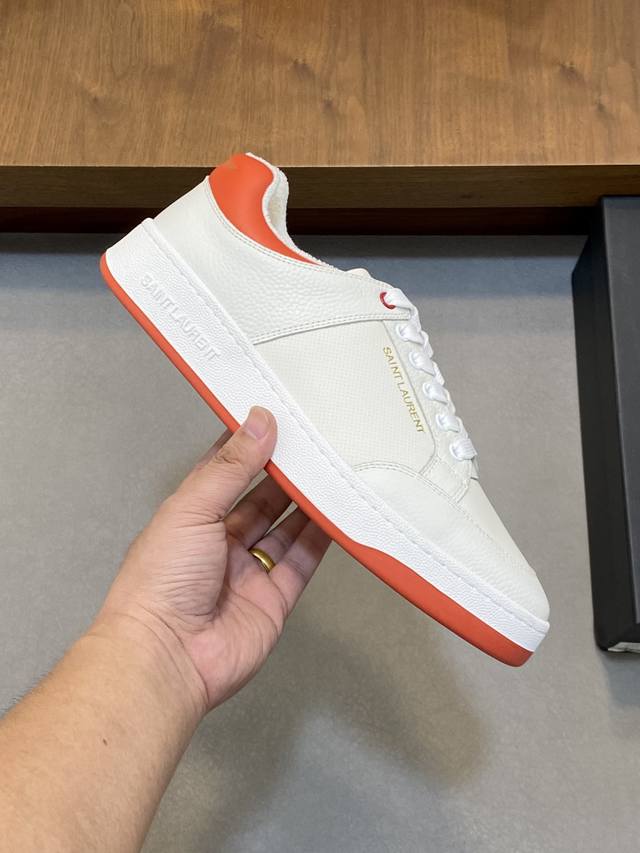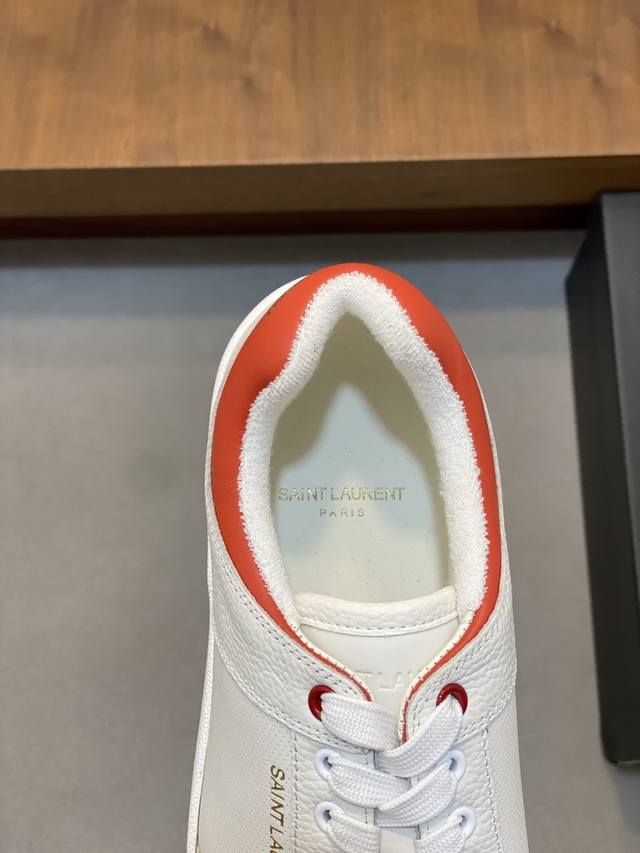 情侣款Saint Laurent圣罗兰低帮系带运动鞋 DDD S L61官网新款 品牌旗舰店同步、意大利原胚粒面牛皮+正面饰片点缀多孔皮革、拉环饰以金色Saint Laurent标志,侧面饰以Sl 61标志 后帮压印圣罗兰标志 内里Tw柔软毛巾布、更加增强鞋子的柔软性、透气性及包裹性、无中底套楦做法、加记忆脚床鞋垫!脚感更加无比舒适轻便 、环保防滑橡胶双色大底、大底周圈车真线 更加增强了整双鞋子的舒适度 牢固度 完美用细节说话 ! DDD 尺码:女款35-39 40.41定做 男款38-45!原盒包装+防
