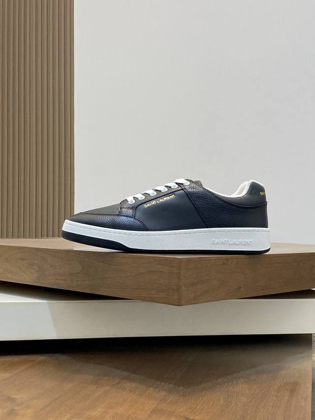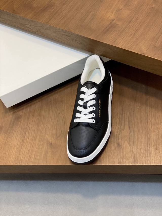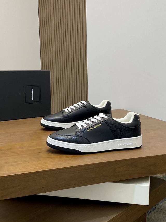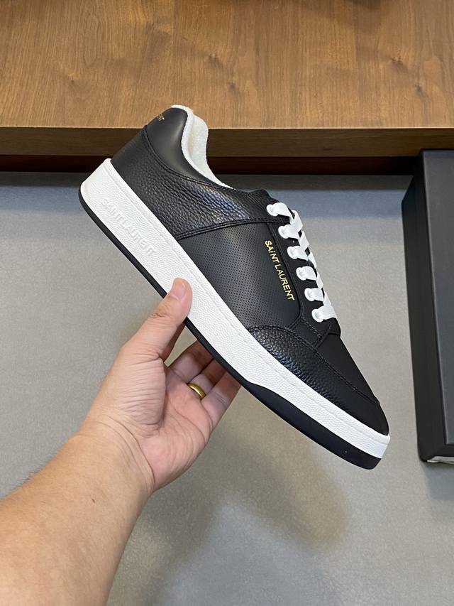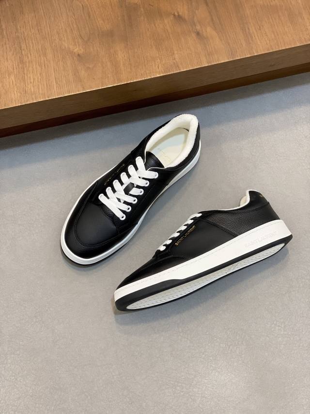 情侣款Saint Laurent圣罗兰低帮系带运动鞋 S L61官网新款 品牌旗舰店同步、意大利原胚粒面牛皮+正面饰片点缀多孔皮革、拉环饰以金色Saint La