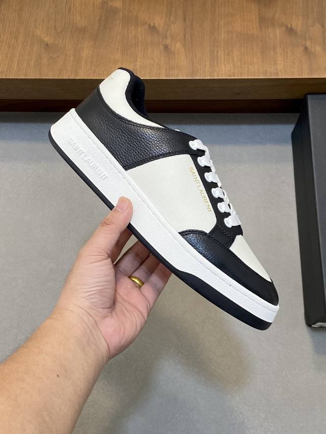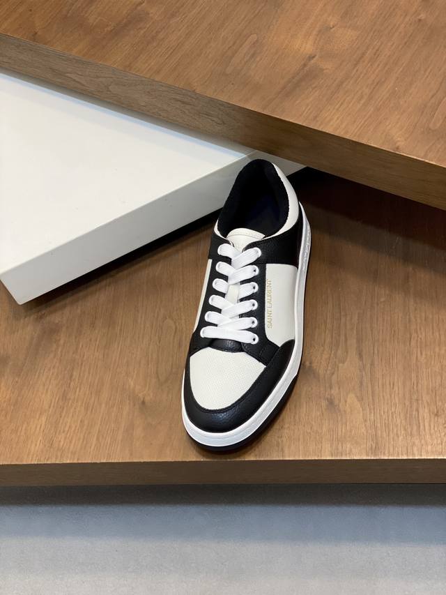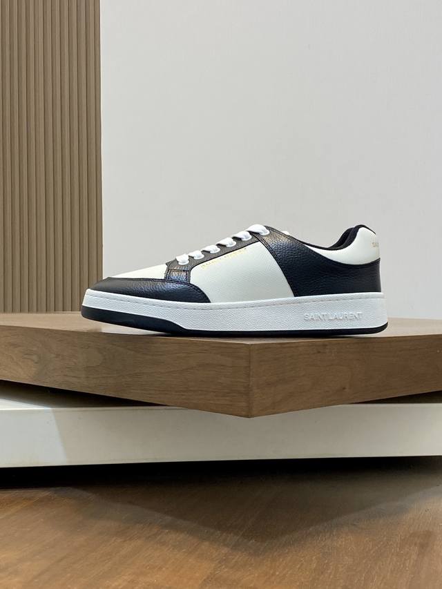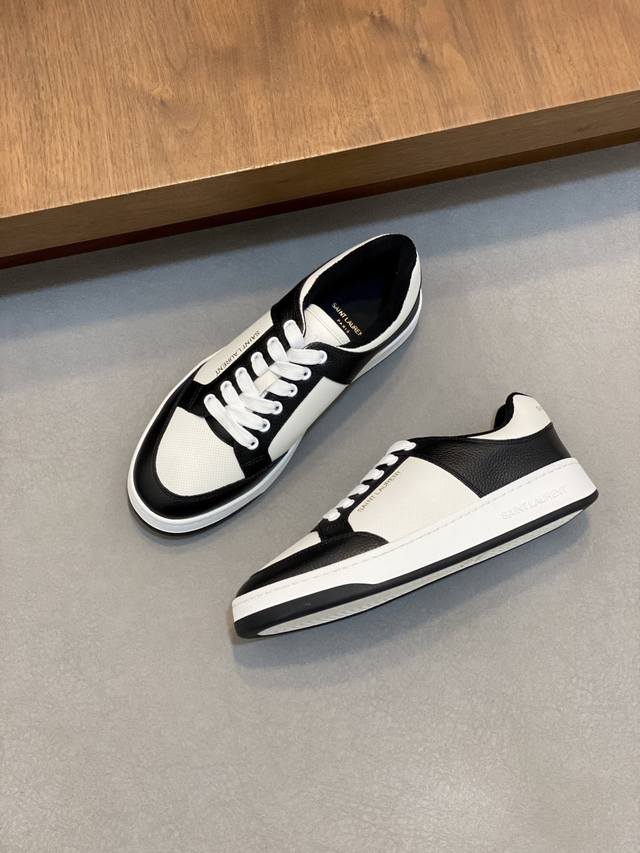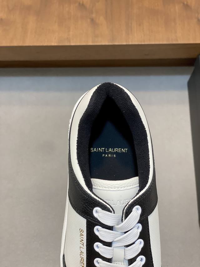 情侣款Saint Laurent圣罗兰低帮系带运动鞋 S L61官网新款 品牌旗舰店同步、意大利原胚粒面牛皮+正面饰片点缀多孔皮革、拉环饰以金色Saint La