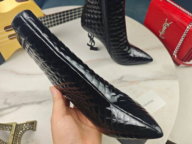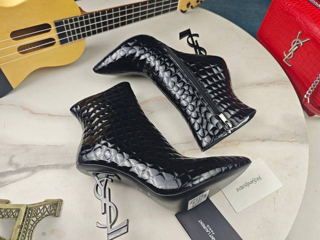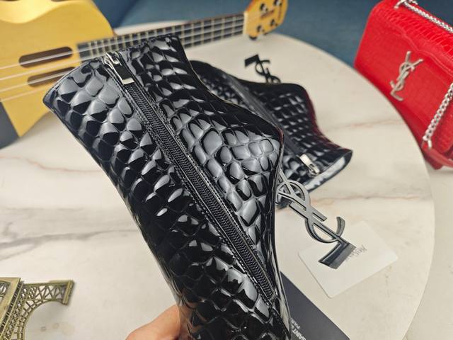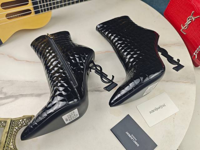 新款 Saint Laurent Ysl 圣罗兰Logo字母高跟靴 秋冬巴黎走秀款 这次设计师注入内侧拉链开口让你在任何场所轻松驾驭 上脚舒适,舒适百搭时髦、回