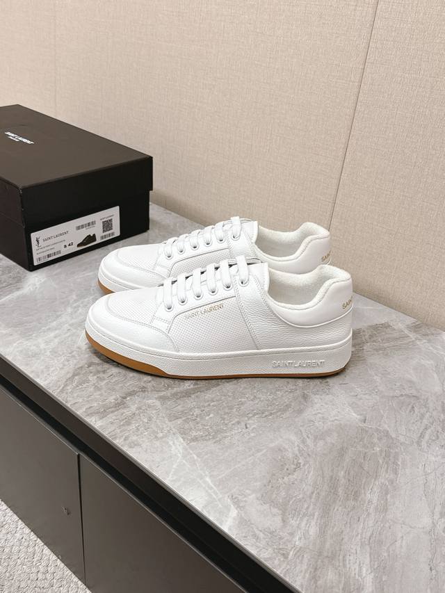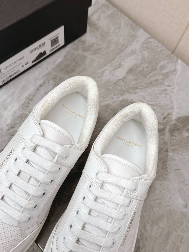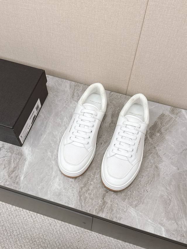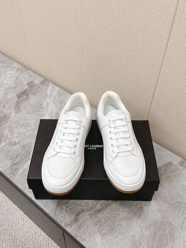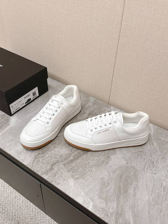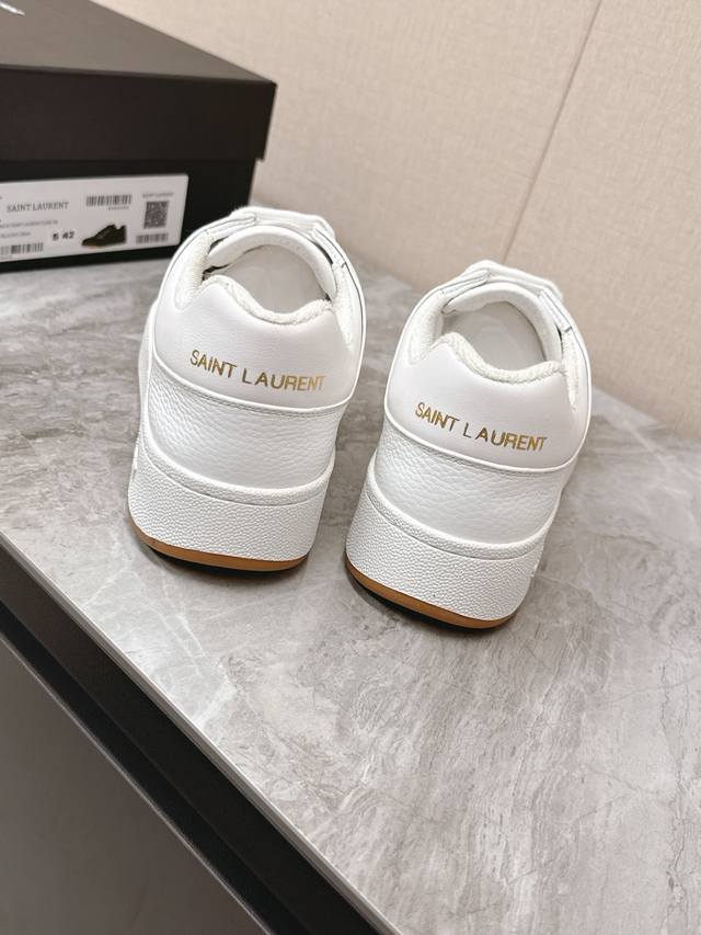 / 男装10 Saint Laurent圣罗兰最新情侣款休闲鞋 小白鞋 超多明星时尚博主种草 朴彩英Rose同款 简约厚底设计 鞋身外侧压Ysl品牌Logo金色标志