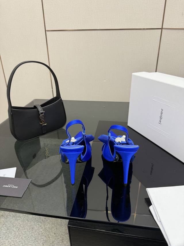 Ysl.顶级版本.高品质. 配置全套包装 2025新款 官网同步 1:1开模水钻扣细跟凉鞋 鞋面:真丝 内里:羊皮 跟高: 8Cm...