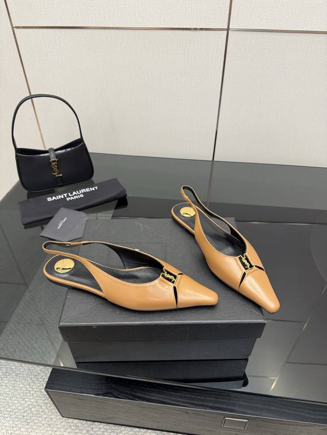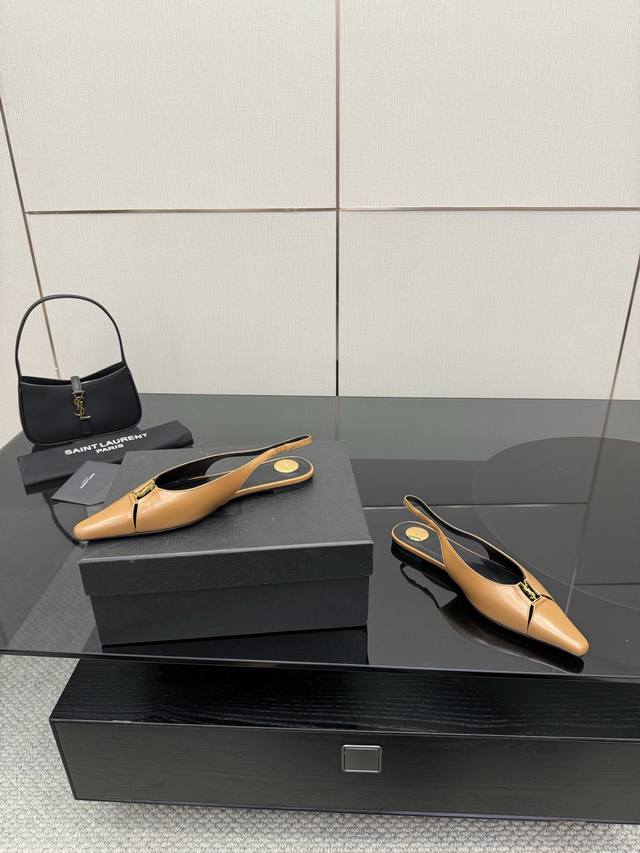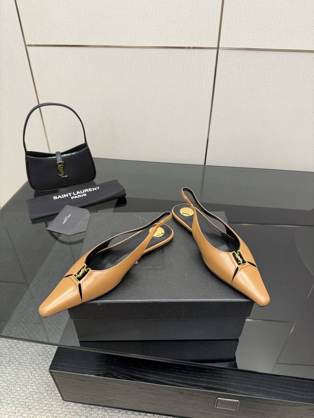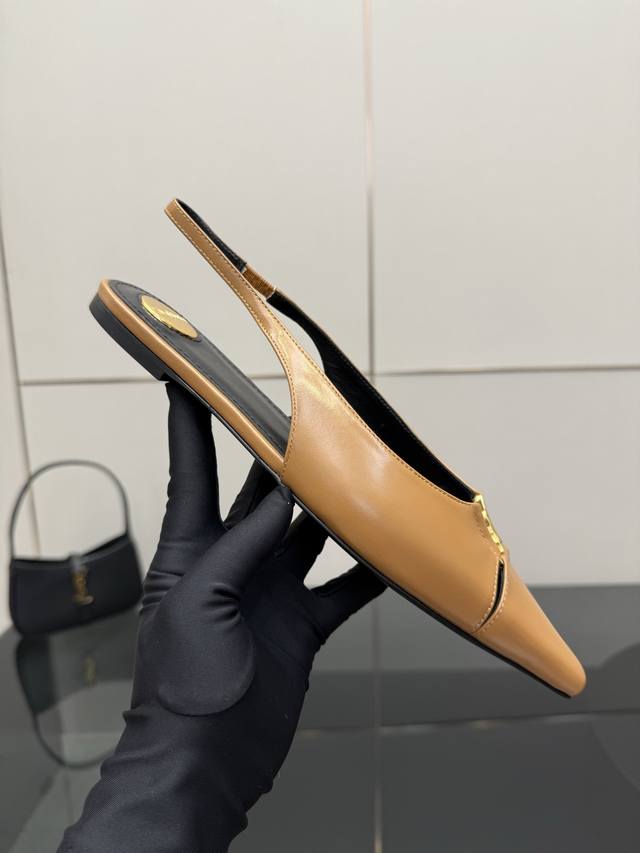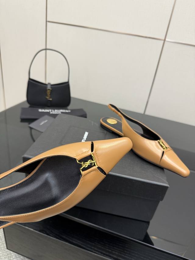 工厂P价 女装女鞋 运动原单 Ysl.顶级版本.高品质. 配置全套包装 2025新款 官网同步 1:1开模 花朵装饰 尖头后空鞋 鞋面:真丝...