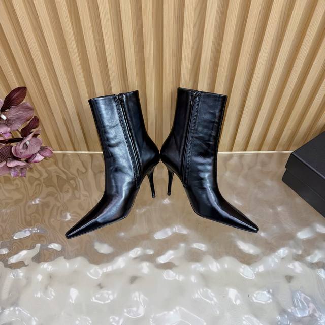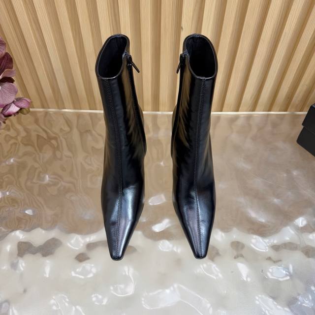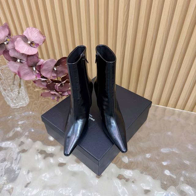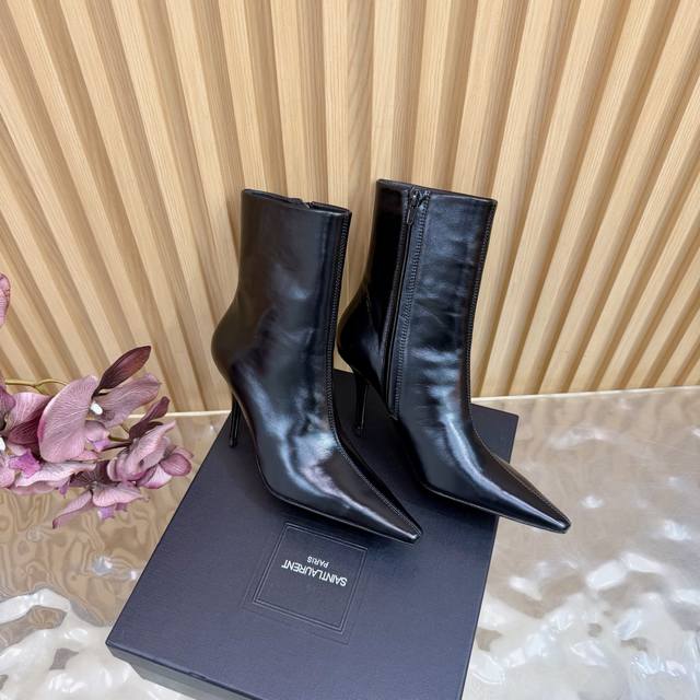 顶级版本Saint Laurent Fw25 New Arrival~ Ysl圣罗兰2025秋冬新款侧拉链高跟及踝靴尖头细跟短靴 及踝靴,搭配方形尖鞋头和细高跟