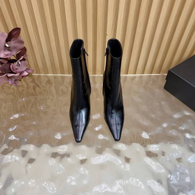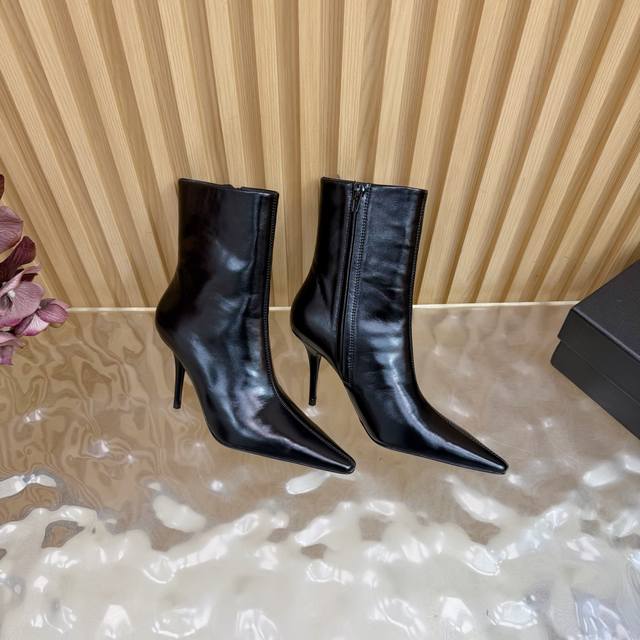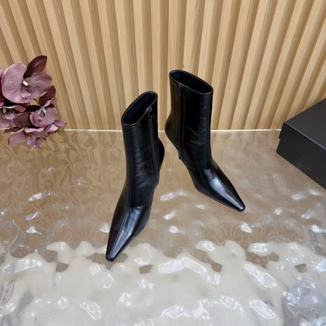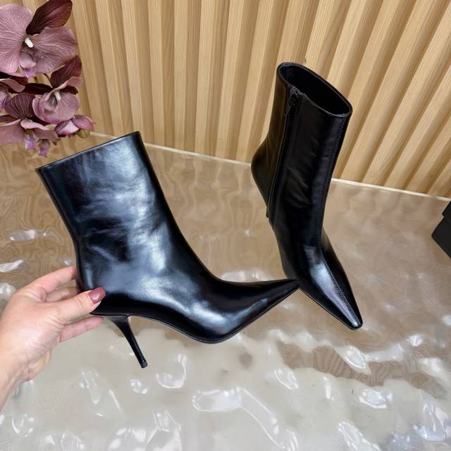 顶级版本Saint Laurent Fw25 New Arrival~ DDD Ysl圣罗兰2025秋冬新款侧拉链高跟及踝靴尖头细跟短靴 DDD 及踝靴,搭配方形尖鞋头和细高跟,内侧饰以Le Cassandre,侧面拉链开合设计。 DDD 整个鞋非常的简约大气~小方头更加的精致时髦可以看到我们靴子侧面是按照人体腿型设计出来的弧度~上脚非常秀气好看不挑人~拉长腿型~适合各种场合搭配~秋冬穿搭必备单品! DDD 鞋面:定制牛皮 细腻羊猄皮 DDD 内里垫脚:羊皮 DDD 鞋底:意大利真皮大底 DDD 跟高:9