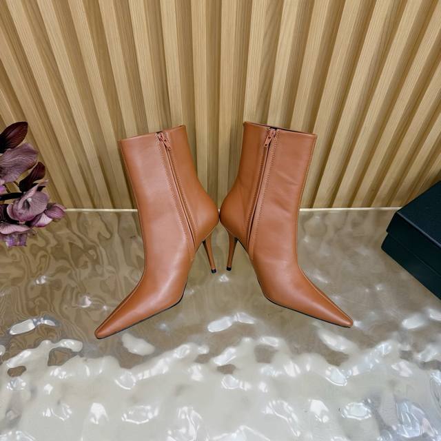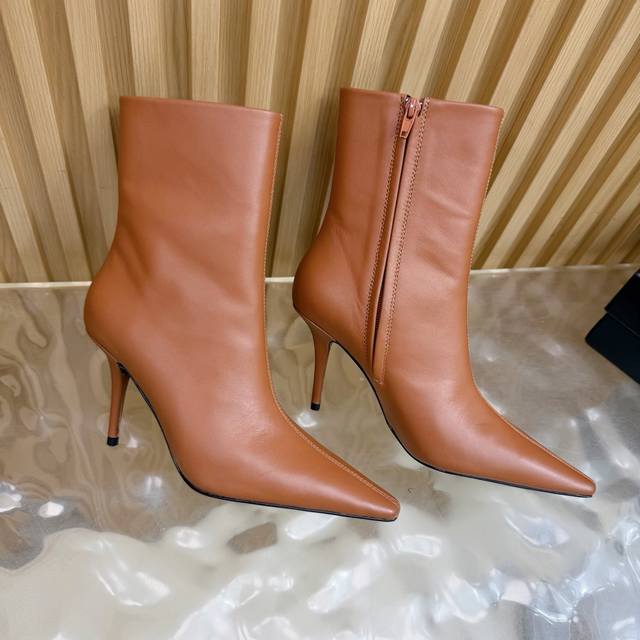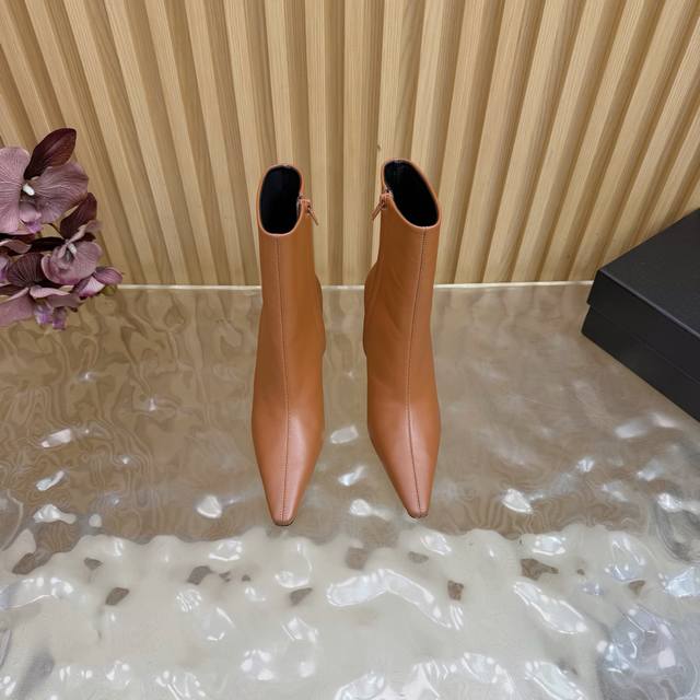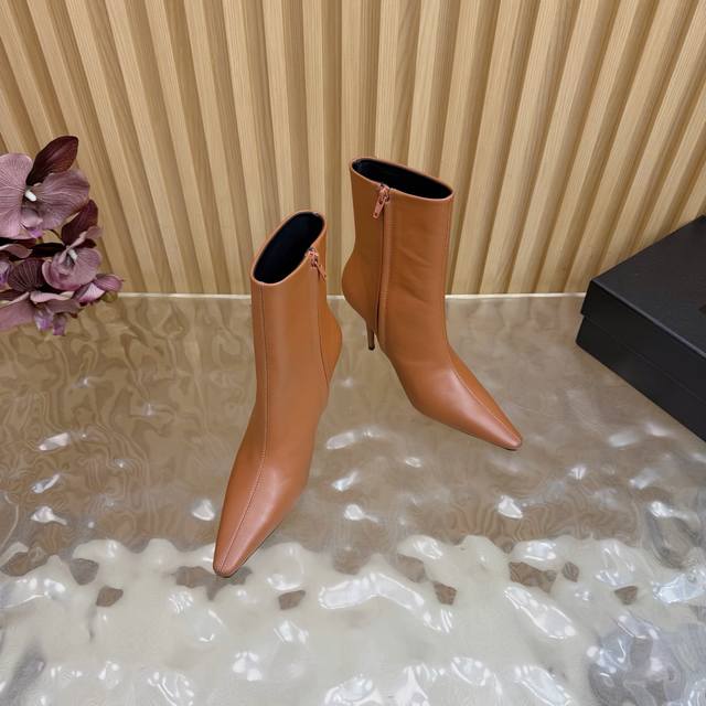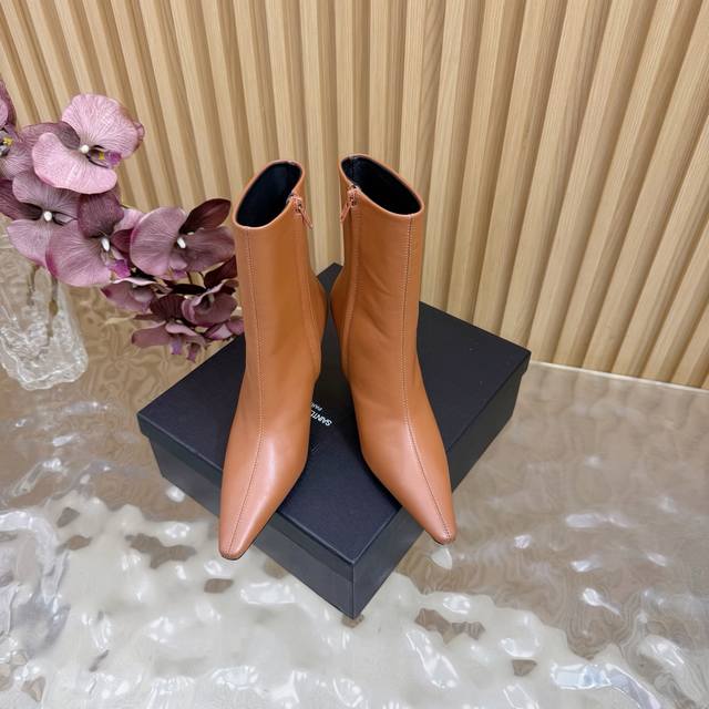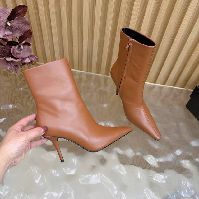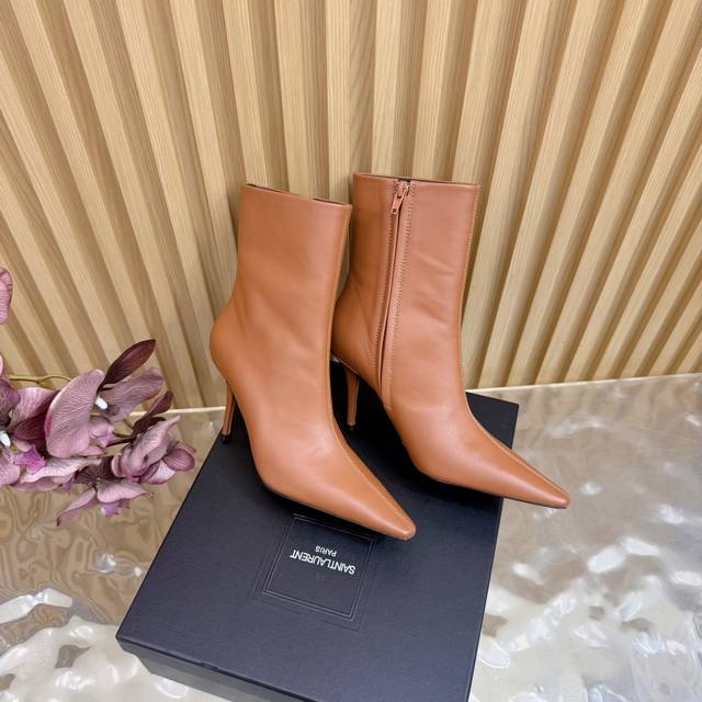 顶级版本Saint Laurent Fw25 New Arrival~ Ysl圣罗兰2025秋冬新款侧拉链高跟及踝靴尖头细跟短靴 及踝靴,搭配方形尖鞋头和细高跟