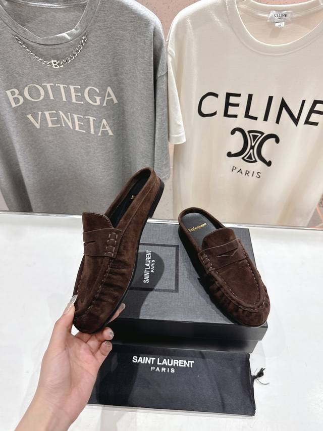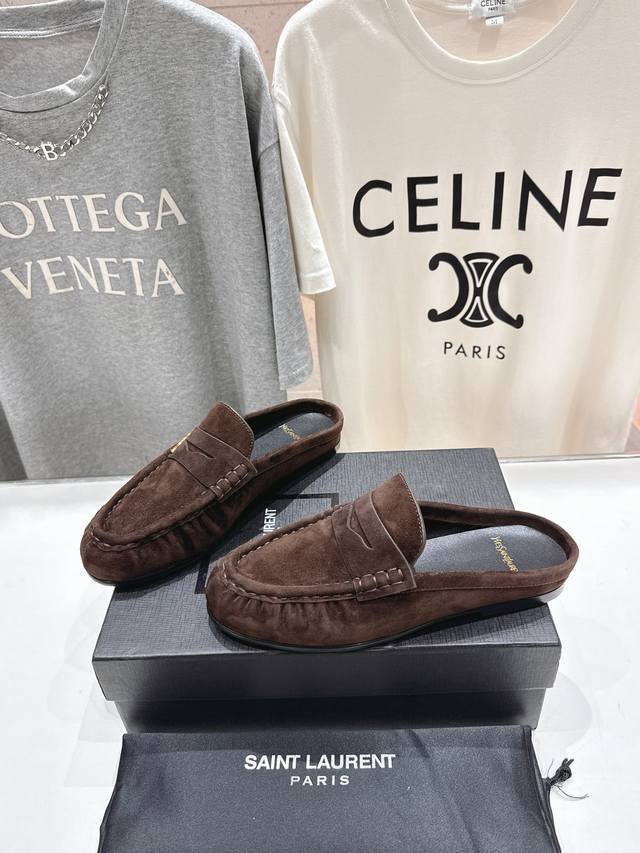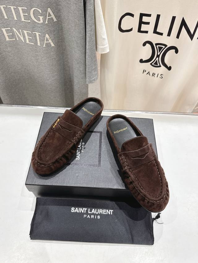 高版本出厂 半托 Saint Laurent 圣罗兰Ysl 25Ss爆款平底玛丽珍一脚蹬乐福鞋半包拖鞋,2025全新升级力推单品明星同款 舒适度非常好,值得拥有