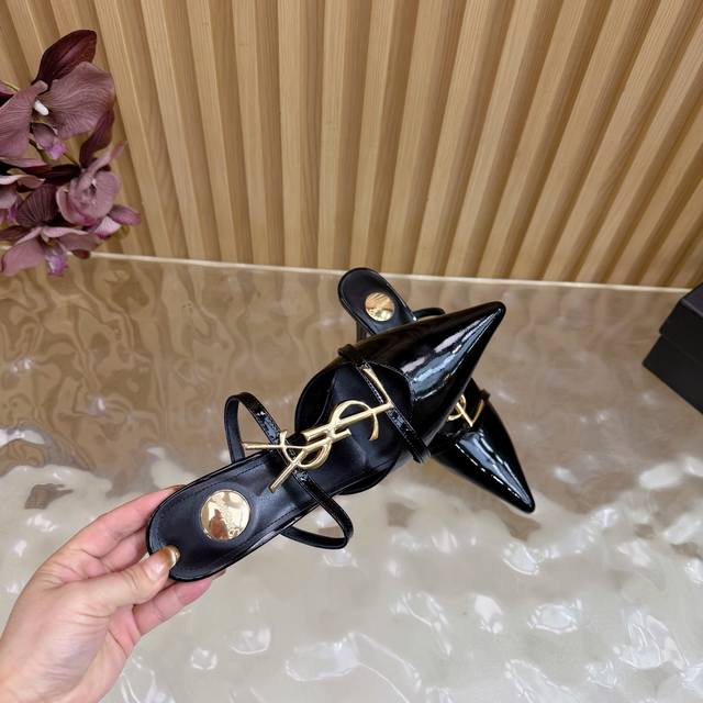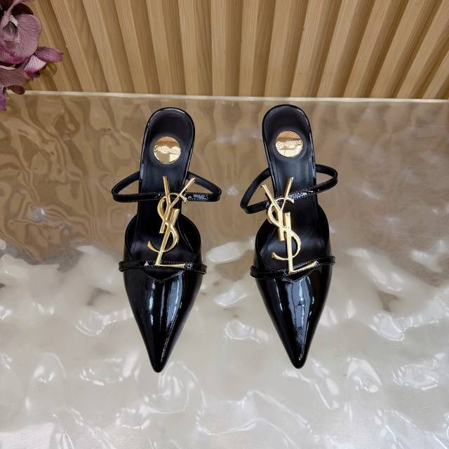 / Saint Laure* Ysl 圣罗兰高跟鞋 经典澳钻。尖头金属Ysl Logo 设计穆勒半拖高跟 简约不简单 优雅极致 精美女人的必备单品 鞋面:漆皮 内里