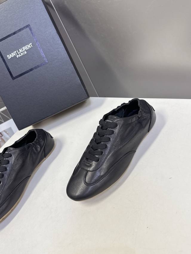 FFF Saint Laurent圣罗兰最新款休闲鞋 薄底鞋 超多明星时尚博主种草 朴彩英Rose同款 简约的设计符合当下老钱风流行趋势 后跟外Ysl品牌Logo金色标志 极具辨识度又充满高级感 简简单单随便搭牛仔裤裙子休闲裤都是那么好看百搭 当下老钱风首选的休闲鞋 鞋面进口小牛皮 内里混种羊皮原版开模橡胶大底Size:35-40 DDD