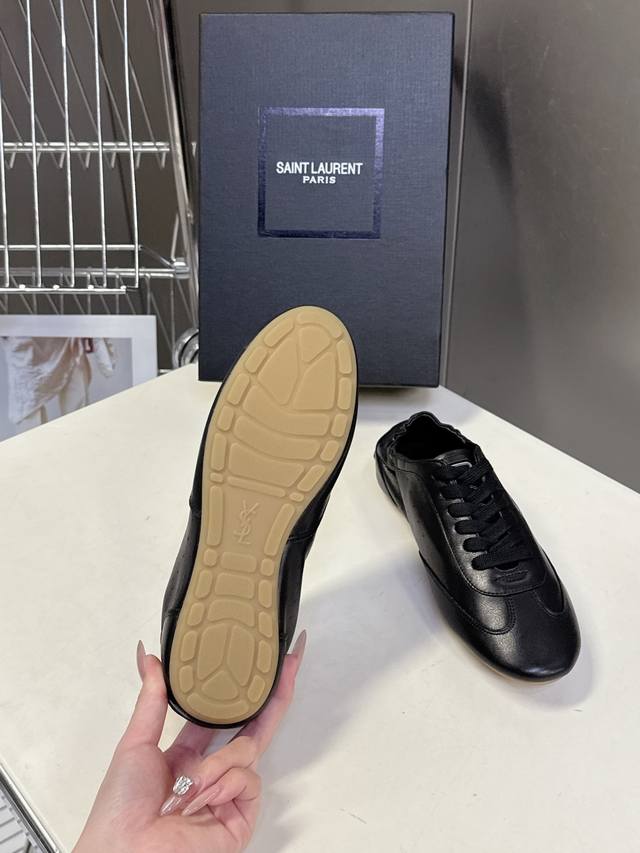 / Saint Laurent圣罗兰最新款休闲鞋 薄底鞋 超多明星时尚博主种草 朴彩英Rose同款 简约的设计符合当下老钱风流行趋势 后跟外Ysl品牌Logo金色标