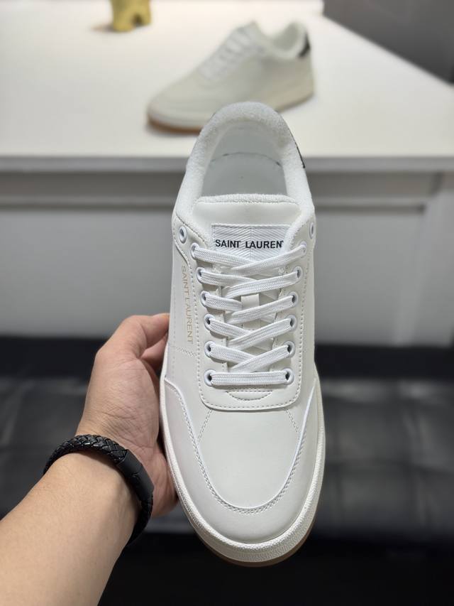 Saint Laurent 圣罗兰 -高端品质原单休闲运动板鞋-鞋面小牛皮打孔工艺、银色牛皮、鞋身.后跟:丝印品牌Logo,内里:毛巾布里,大底:超轻Tpr.橡