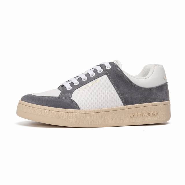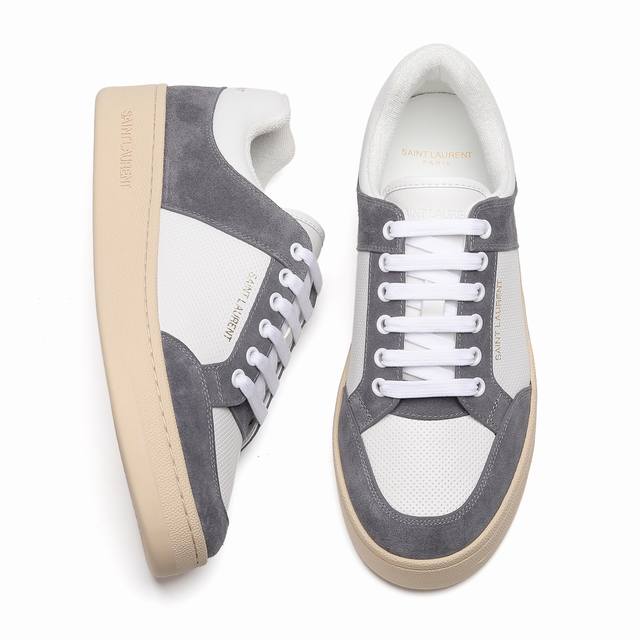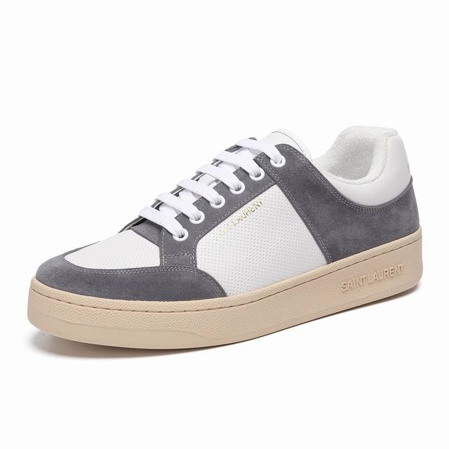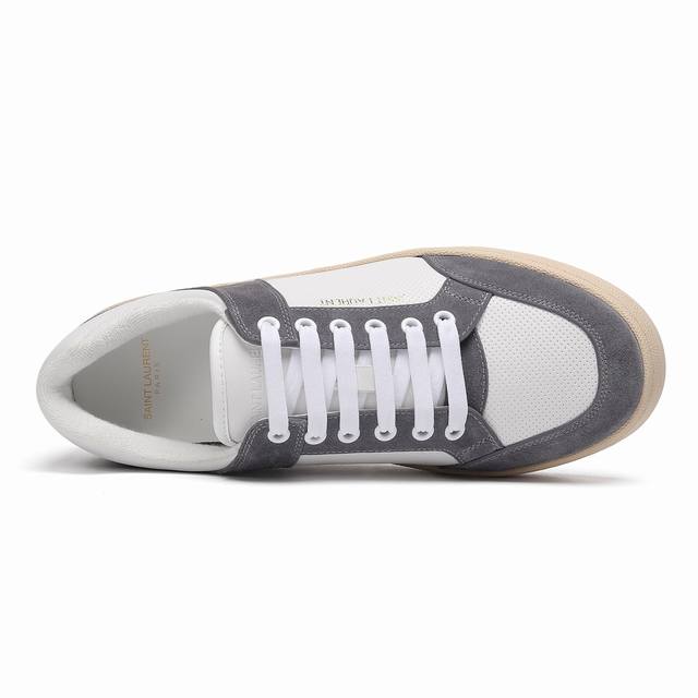 Saint Laurent 圣罗兰 -高端品质 原单休闲运动板鞋-鞋面:纳帕小牛皮打孔工艺、银色牛皮、鞋身.后跟:丝印品牌Logo-内里:毛巾布里,垫脚;水染牛皮-大底:超轻Tpr.橡胶; 双色成型大底-超高品控 做工精细:凸显 高端 贵气 档次 -Size :38-44 45,46 可订做