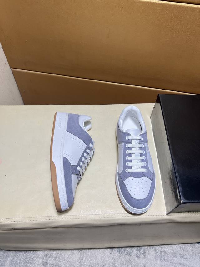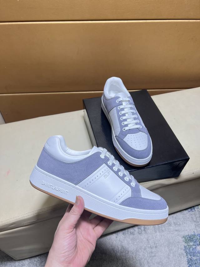 Saint Laurent 圣罗兰 -高端品质 原单休闲运动板鞋 -鞋面:纳帕小牛皮打孔工艺、银色牛皮、鞋身.后跟:丝印品牌Logo -内里:毛巾布里,垫脚;水