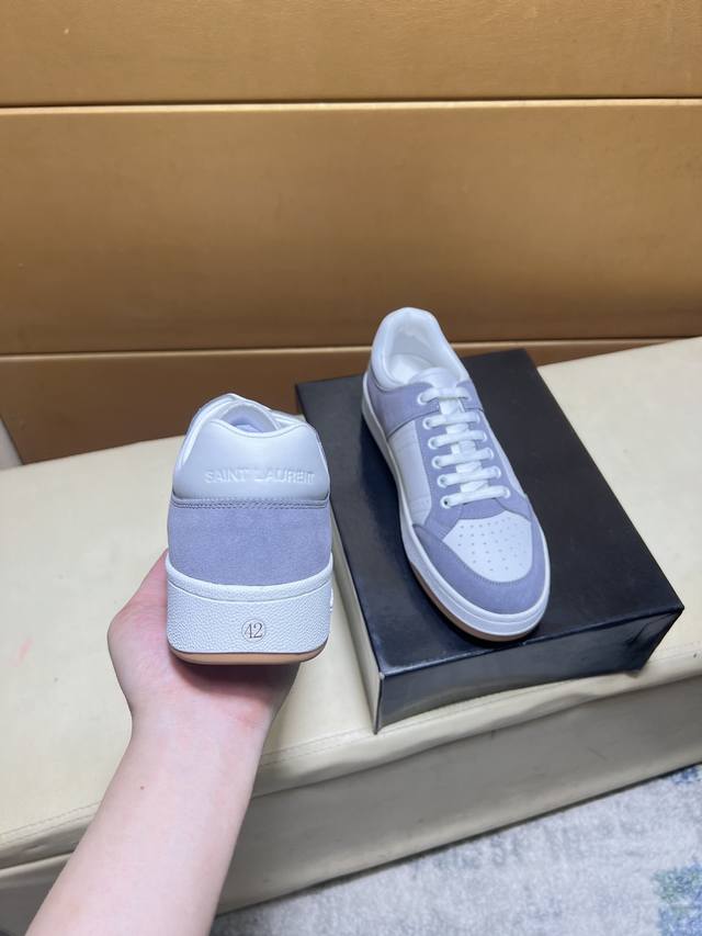 Saint Laurent 圣罗兰 DDD -高端品质 原单休闲运动板鞋 DDD -鞋面:纳帕小牛皮打孔工艺、银色牛皮、鞋身.后跟:丝印品牌Logo DDD -内里:毛巾布里,垫脚;水染牛皮 DDD -大底:超轻Tpr.橡胶; 双色成型大底 DDD -超高品控 做工精细:凸显 高端 贵气 档次 DDD -Size :38-44 45,46 可订做 DDD