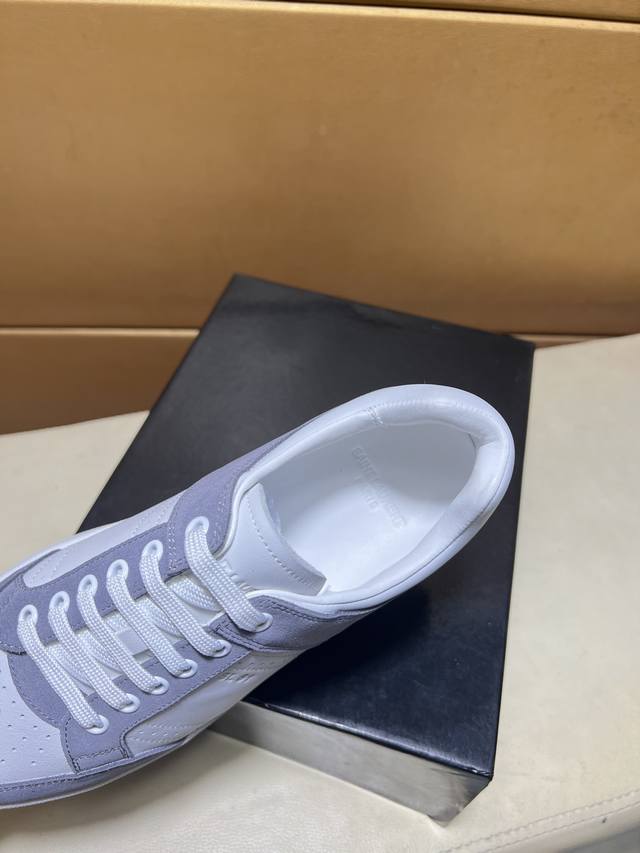 / Saint Laurent 圣罗兰 -高端品质 原单休闲运动板鞋 -鞋面:纳帕小牛皮打孔工艺、银色牛皮、鞋身.后跟:丝印品牌Logo -内里:毛巾布里,垫脚;水