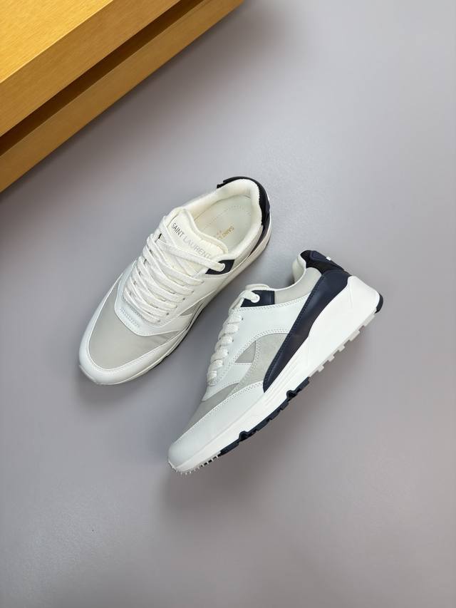 Saint Laurent 圣罗兰 -高端品质 原单 休闲运动鞋 -鞋面:纳帕小牛皮、反绒小牛皮、鞋舌.丝印品牌Logo、后跟车缝品牌塑胶模块 -内里:毛巾布里,垫脚;水染牛皮 -大底:超轻Tpu发泡.橡胶; 双色成型大底 -超高品控 做工精细:凸显 高端 贵气 档次 -Size :39-44 38,45,可订做 Sl0920