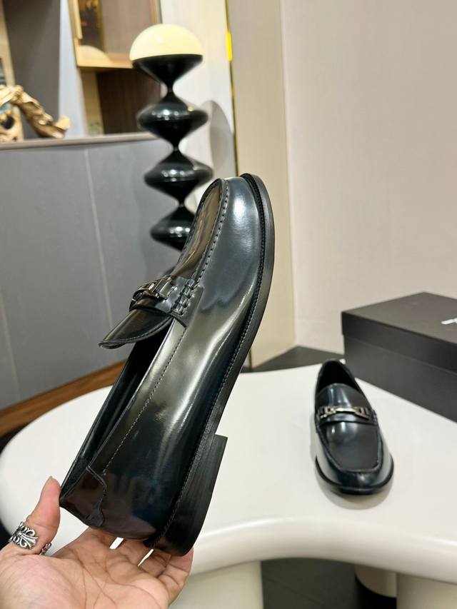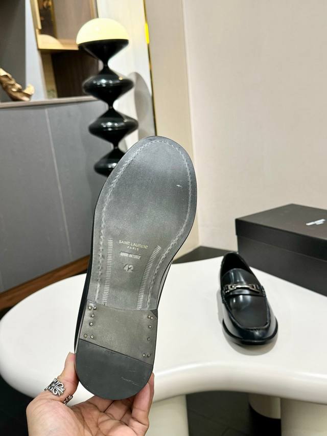 Ysl 圣罗兰~ 码数:39-44 38.45.46定做 Ysl圣罗兰男士正装皮鞋,顶级复刻,面选用进口开边珠牛皮,搭配进口五金吊坠,水染牛皮透气内里,原版进口