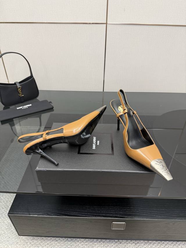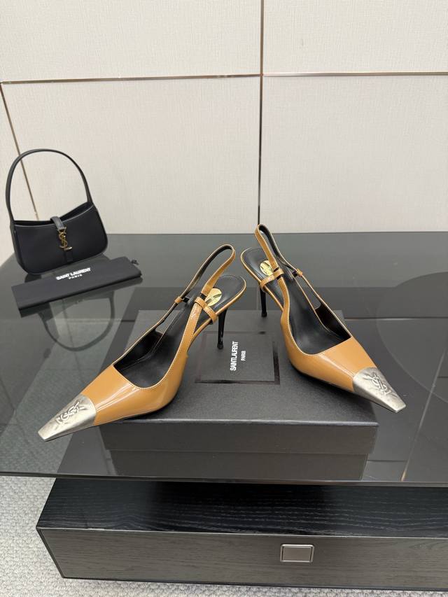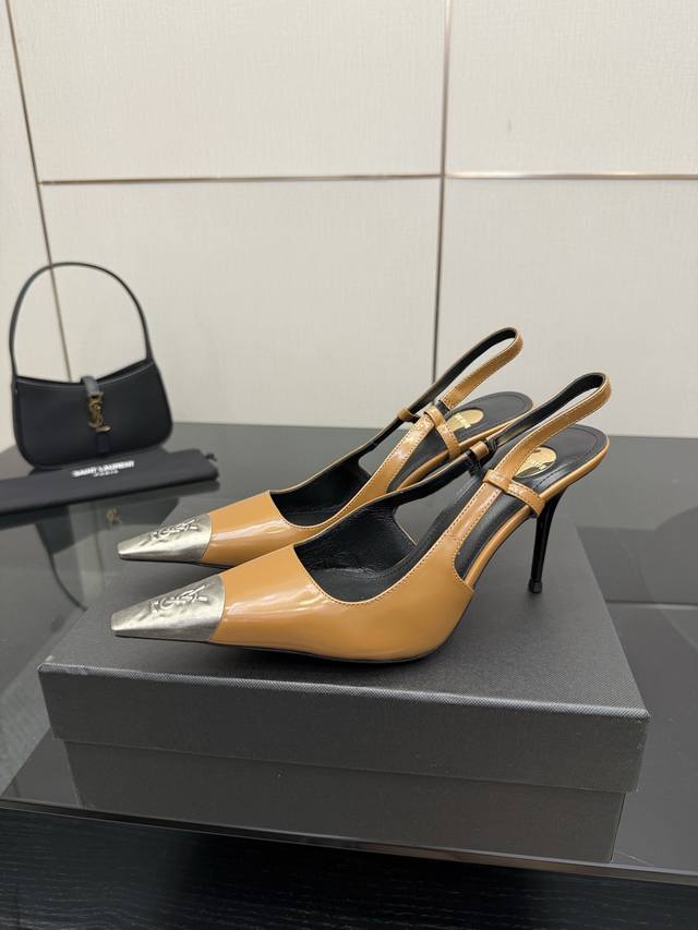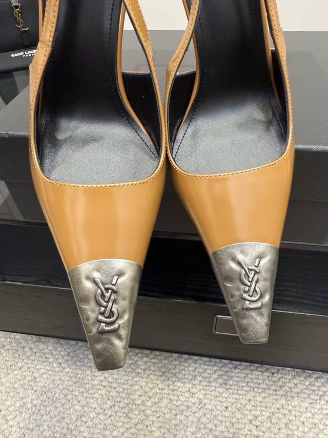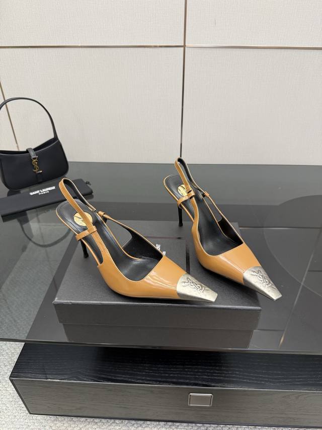 Ysl 圣罗兰 Ss 新品 金属头优雅大气高跟凉鞋 全新春夏系列后带方扣高跟凉鞋 ! 尖头高跟拖鞋淡淡的夏日里怎么少得了一双仙女鞋 各种小裙子搭配起来 完全不挑