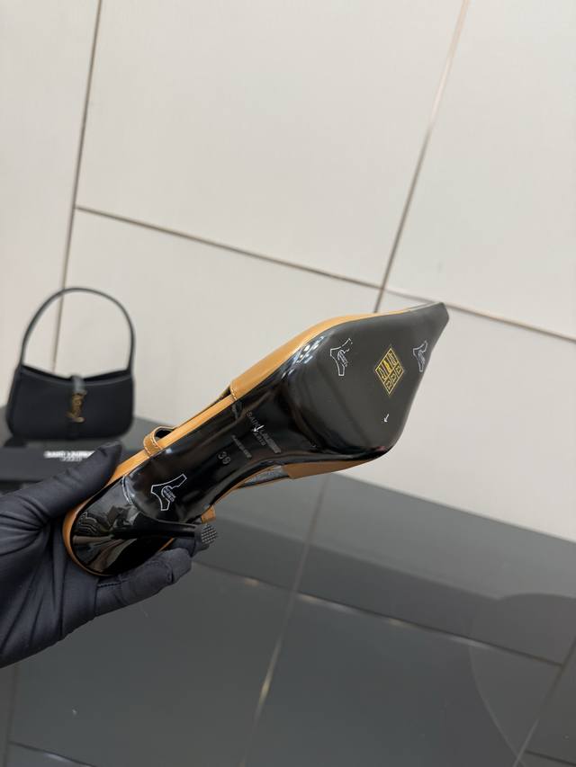 Saint Lauren*Ysl圣罗兰ss24款侧金条小方头高跟凉鞋 鞋面:进口牛漆皮 进口开边珠 垫脚:进口羊皮里 大底:真皮大底 跟高:10.5Cm 6.5
